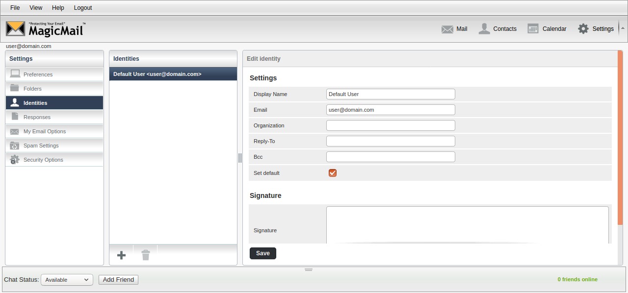 This is where you manage your identities. Identities are different email addresses or names that can be setup on your account. Clicking on an identity will allow you to edit the settings for that identity.