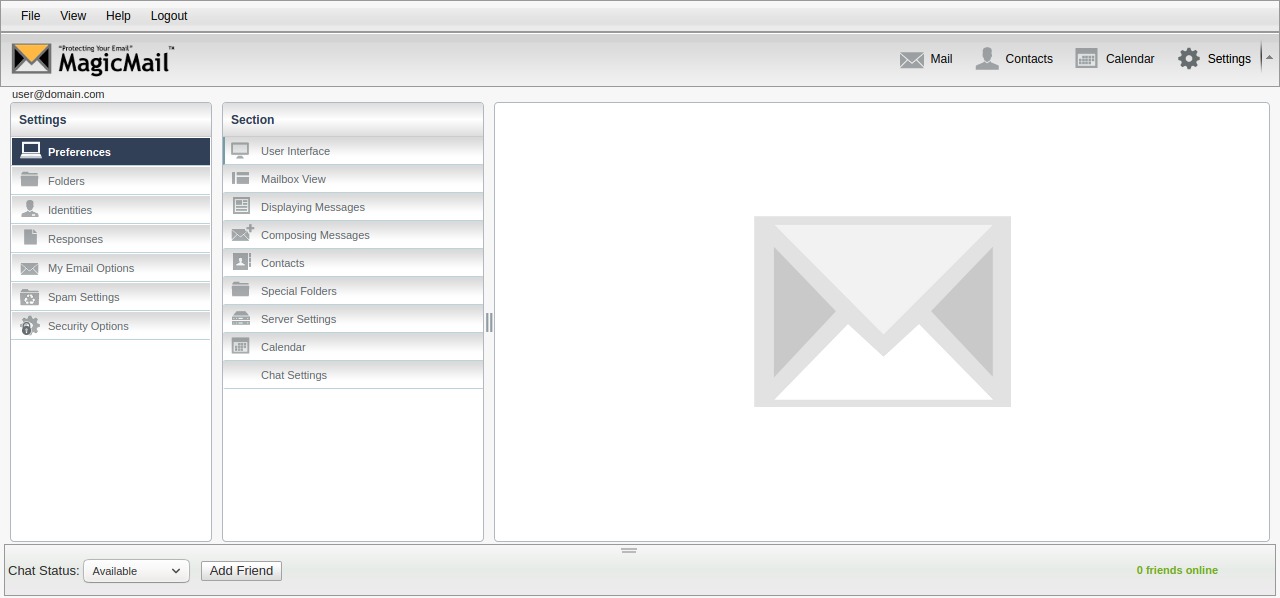 From the View menu you can access the various sections of the webmail application such as: